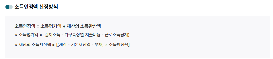 소득인정액은 실제 소득과 재산의 소득환산액을 더해 계산해요. 여기서 ‘소득’은 급여, 연금, 아르바이트 수입뿐 아니라 자녀로부터의 부양비, 보장 수령금, 임대소득 등이 포함돼요.
