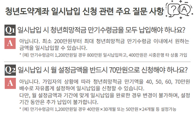 이로 인해 청년도약계좌를 통해 자산을 더욱 효과적으로 늘릴 수 있는 기회가 열렸지만, 일시납입 시 고려해야 할 중요한 사항들이 있어요.